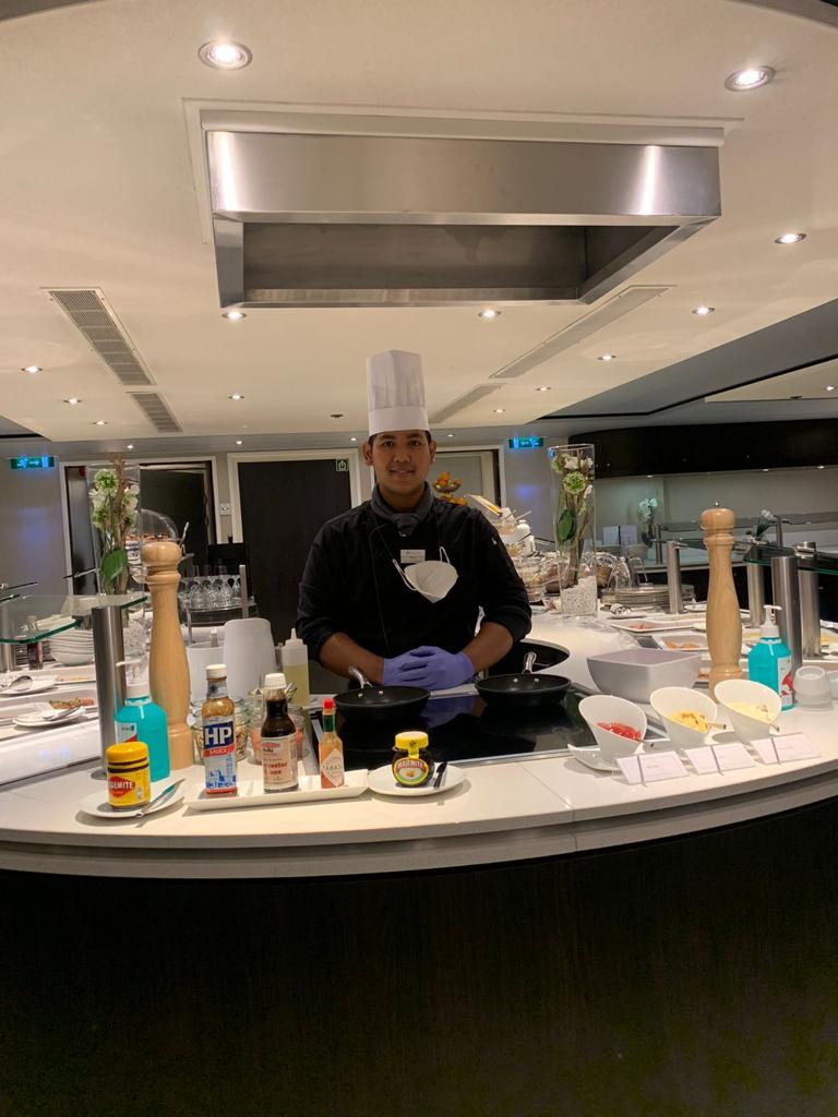 We also recruit student from the hotel school who have graduated.They are still young and energic have high spirit to work on board.